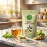 Tulsi Ginger Tea is a soothing herbal blend that combines the calming proerties of Tulsi with the warming strenght of Ginger. This comforting infusion supports digestion and immunity while helping refresh the body and mind. Enjoy a naturally aromatic cup as per of your daily wellness routine.